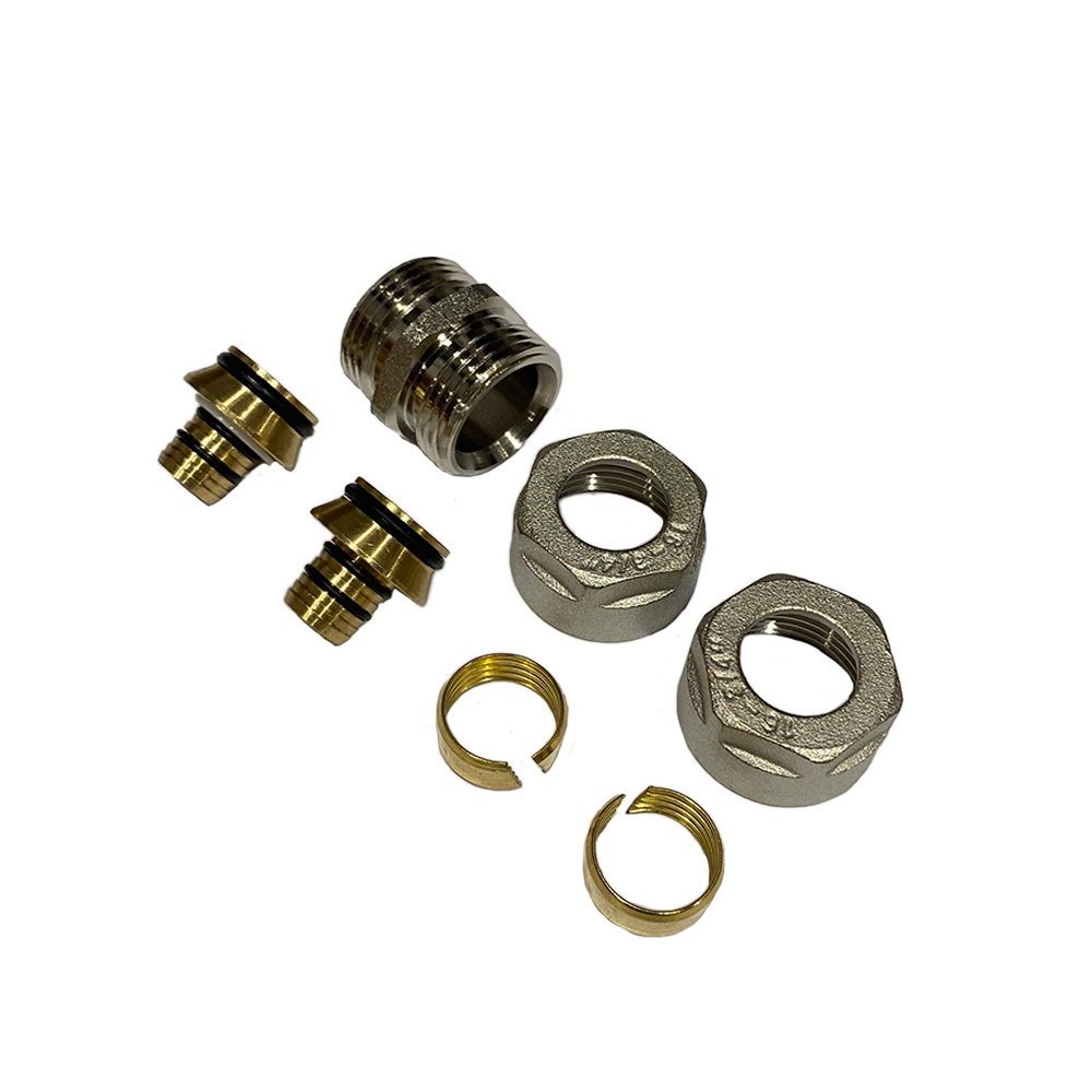 Compression coupling for connecting 15mm x 12mm underfloor heating pipe.