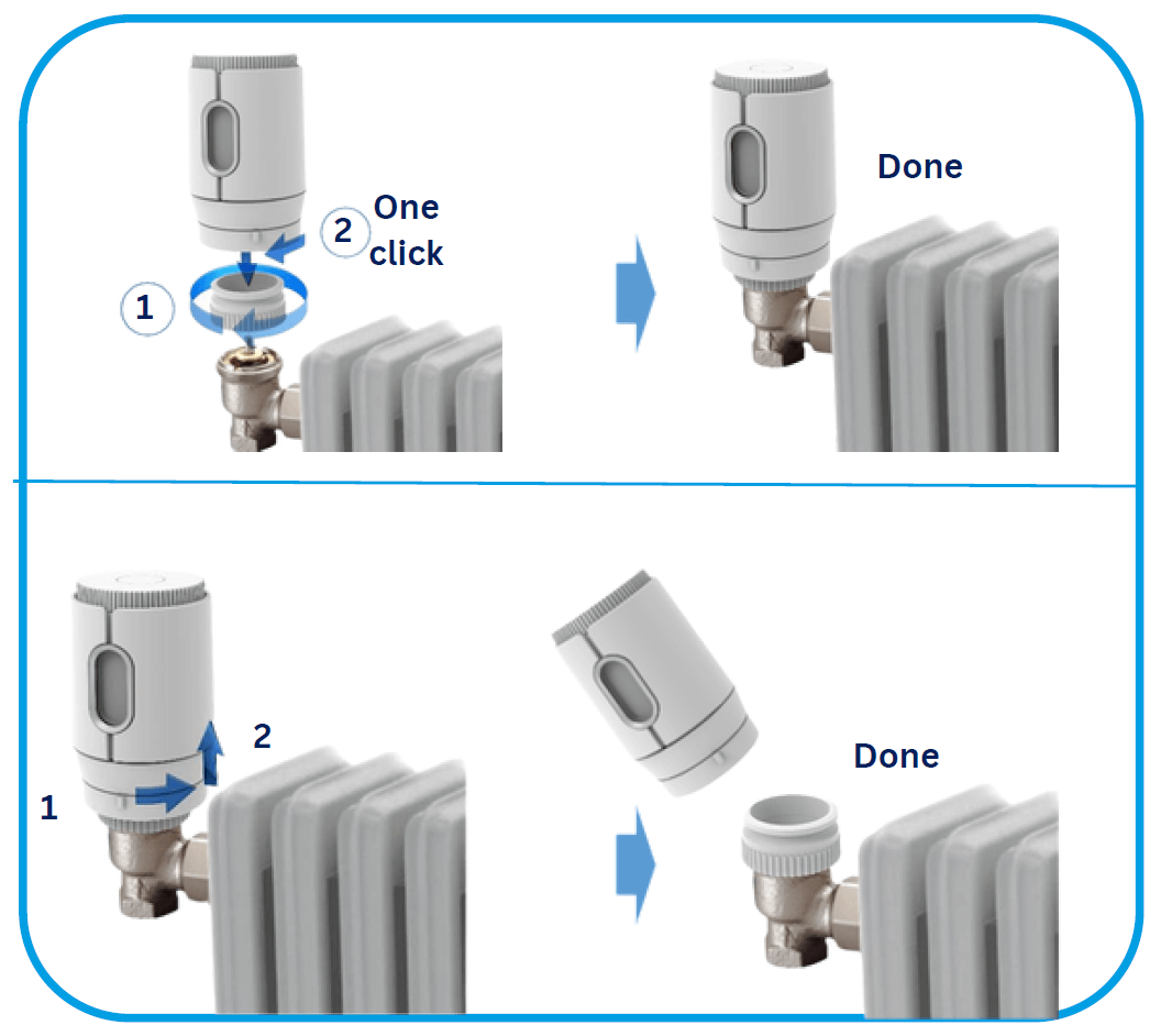 Attach the TRV: Use the quick-connect feature to securely mount the TRV onto the valve.